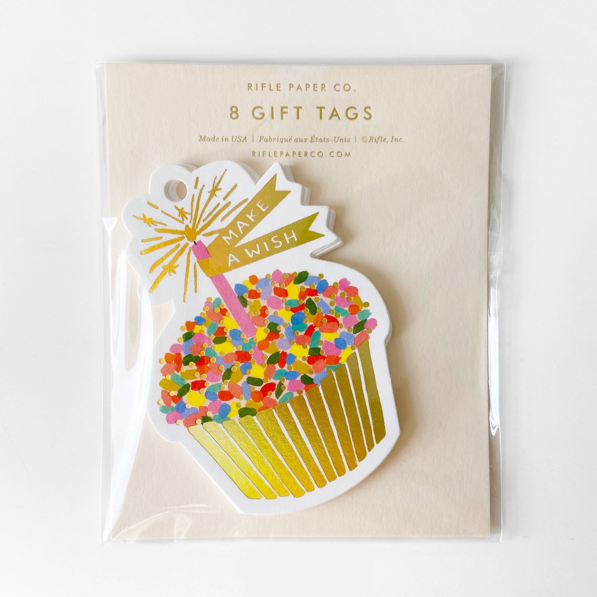 Add a shimmery finishing touch to your present with this pretty cupcake gift tag, which feature rainbow metallic accents and spaces for "To" and "From" on the back.