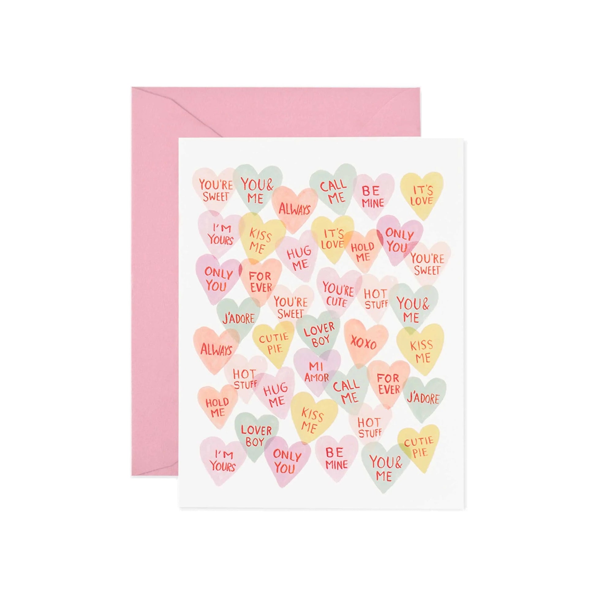Reminiscent of the little candy hearts, this adorable card says it all! Send your bae a handwritten note of love on Valentine's or just any other Tuesday!